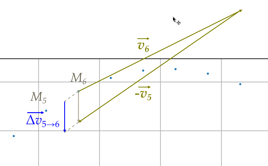 \(\overrightarrow{Δv}_{5\rightarrow 6} = \overrightarrow{v}_6 - \overrightarrow{v}_5\)