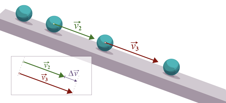 calcul du vecteur variation de vitesse|\[\overrightarrow{\Delta v}_i = \overrightarrow{v}_{i+1} - \overrightarrow{v}_i\]