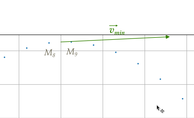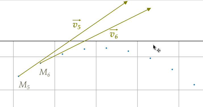 \(v_\text{mini} = \frac{M_8M_9}{Δt} = \frac{1,3}{0,2} = 6,5\text{ m.s}^{-1}.\)