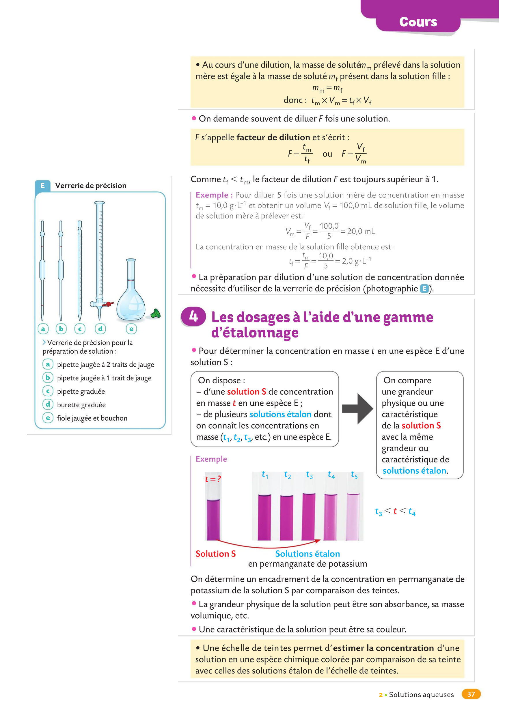 dilution ?|<ul><li>Prélever un volume <i>V</i><sub>mère</sub> de solution mère à la <strong>pipette (jaugée ou graduée)</strong> ;</li><li>Délivrer dans une <strong>fiole jaugée</strong> de volume <i>V</i><sub>fille</sub> ;</li><li>Compléter avec le solvant jusqu'au trait de jauge.</li>