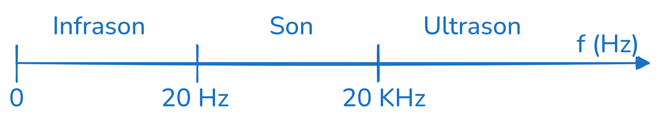 L’oreille humaine est sensible aux ondes sonores de fréquences comprises entre 20 Hz et 20 kHz. En dessous de 20 Hz on parle d’infrason et au dessus de 20 kHz on parle d’ultrason.