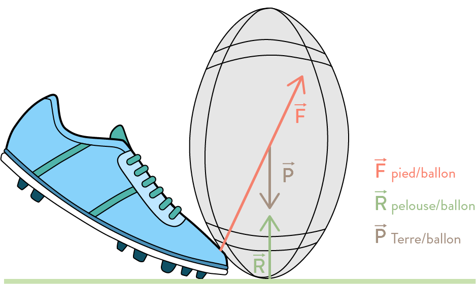 Représentation des forces s’exercant sur un ballon au moment du tir