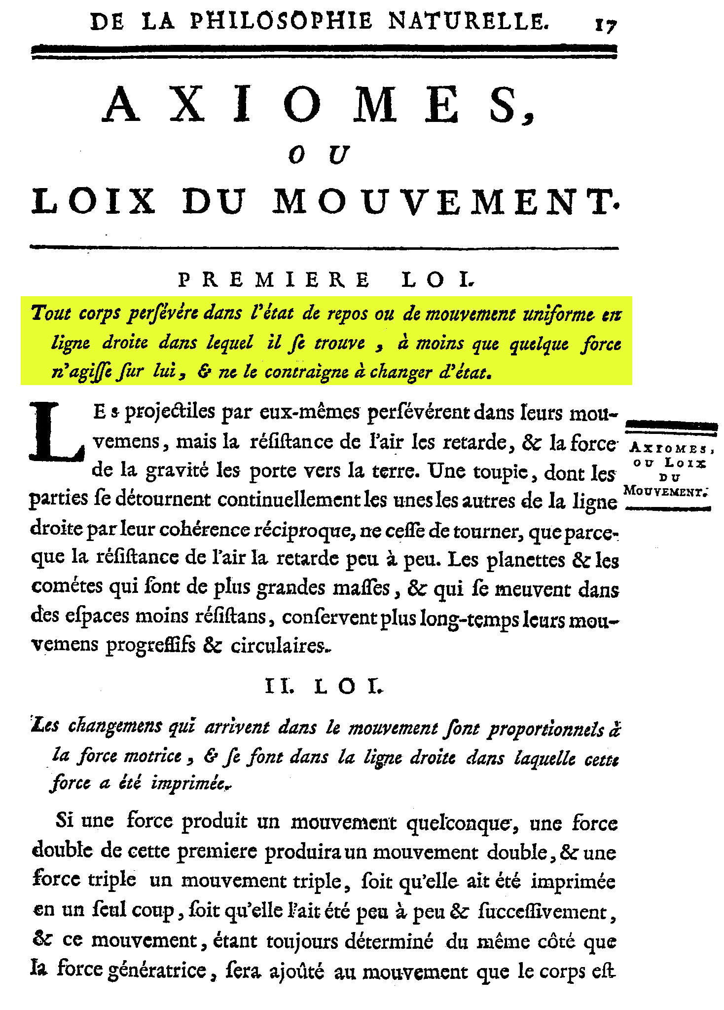 Un corps reste immobile ou en mouvement rectiligne uniforme si et seulement si aucune force extérieure n’agit sur lui.